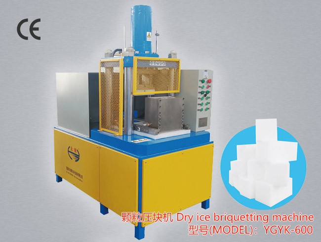 YGYK-600干冰压块机是一款把小颗粒干冰压制成大块干冰的半自动机器,生产的干冰主要用于低温保鲜与运输、干冰清洗去毛刺等行业。